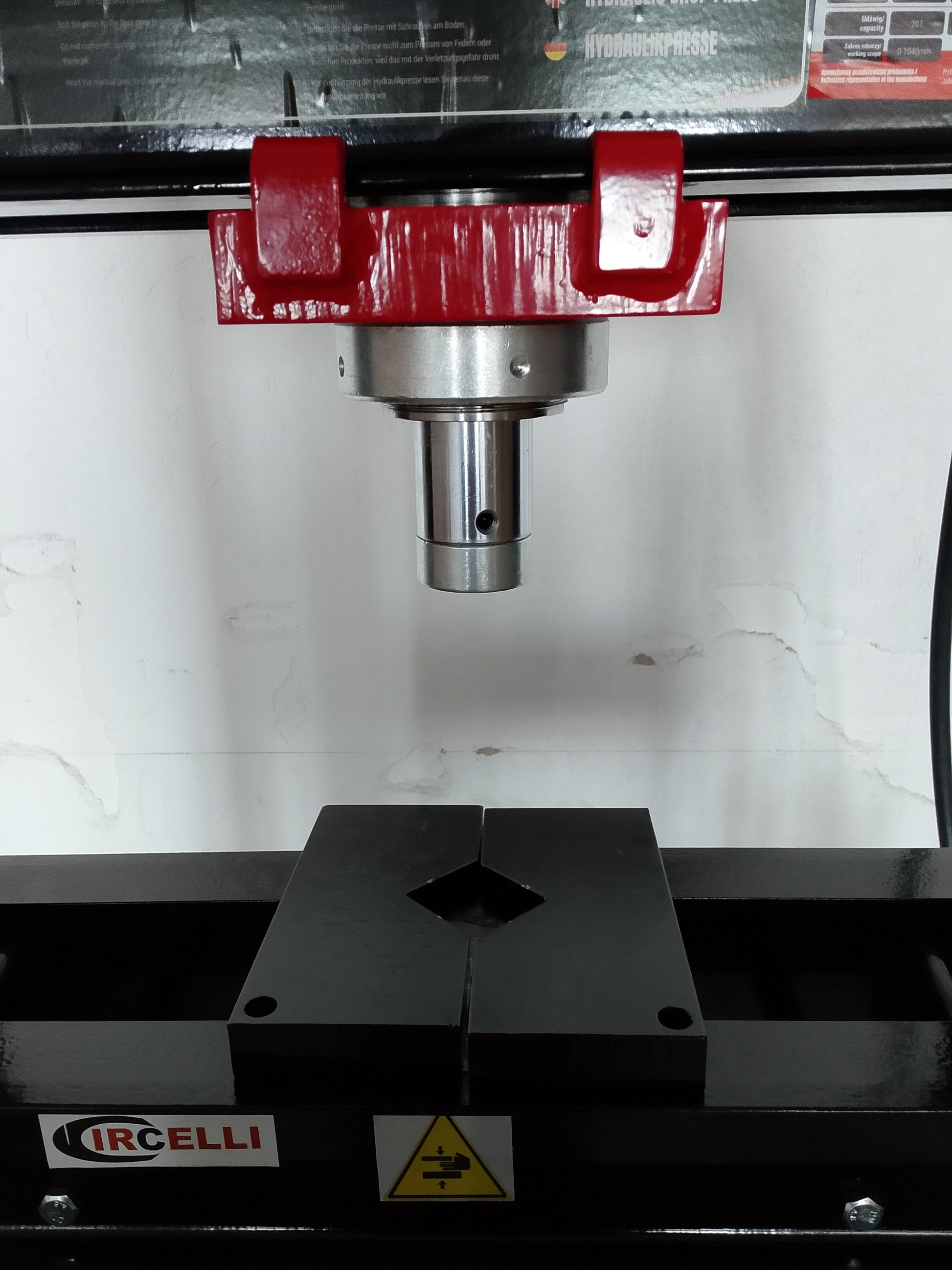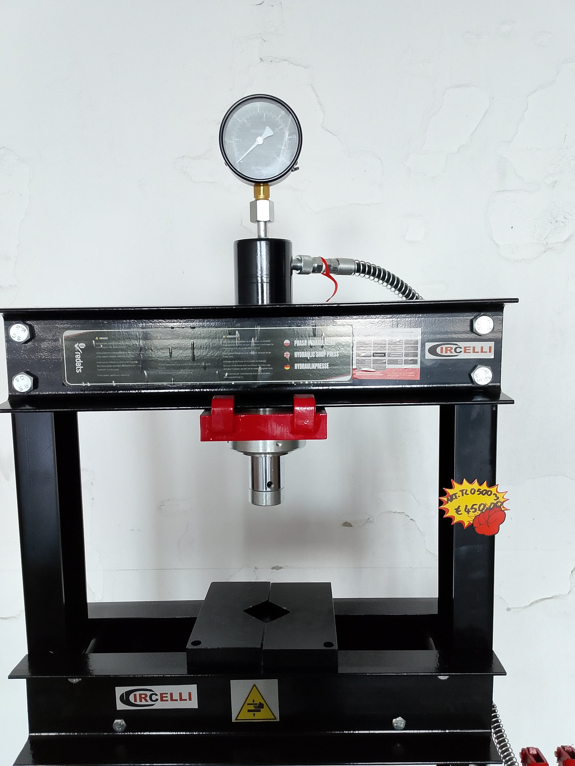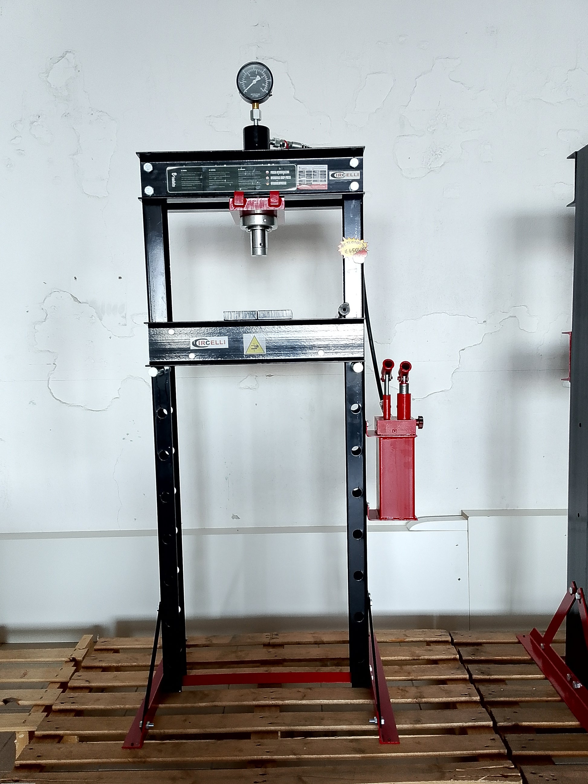 Pressa idraulica da 20 tonnellate, pistone mobile e pompa a 2 velocità.